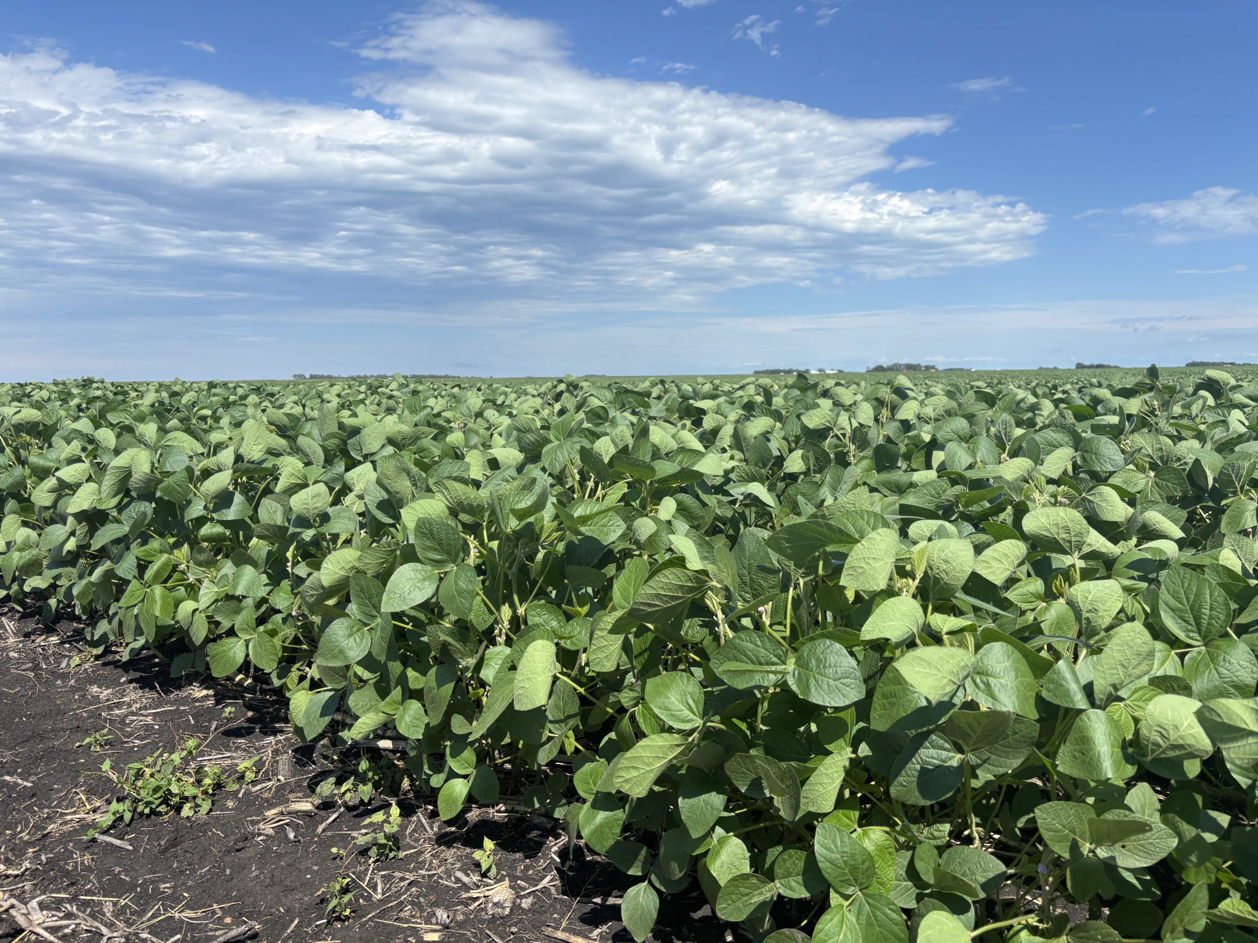 Mattさんは大豆を育てて3年目の農家で、大豆の畑は110ヘクタールあります。また、小麦、トウモロコシの畑を含めると全体で1000ヘクタールほどの畑を所有しており、3名という少ない人数で管理しているそうです。大豆の植え付けは5月14日、8日間で植え付け完了。畑についても雑草の管理が行き届いており綺麗な状況でした。また、コンバインなどの機械もみせていただき、規模の大きさに驚きました。