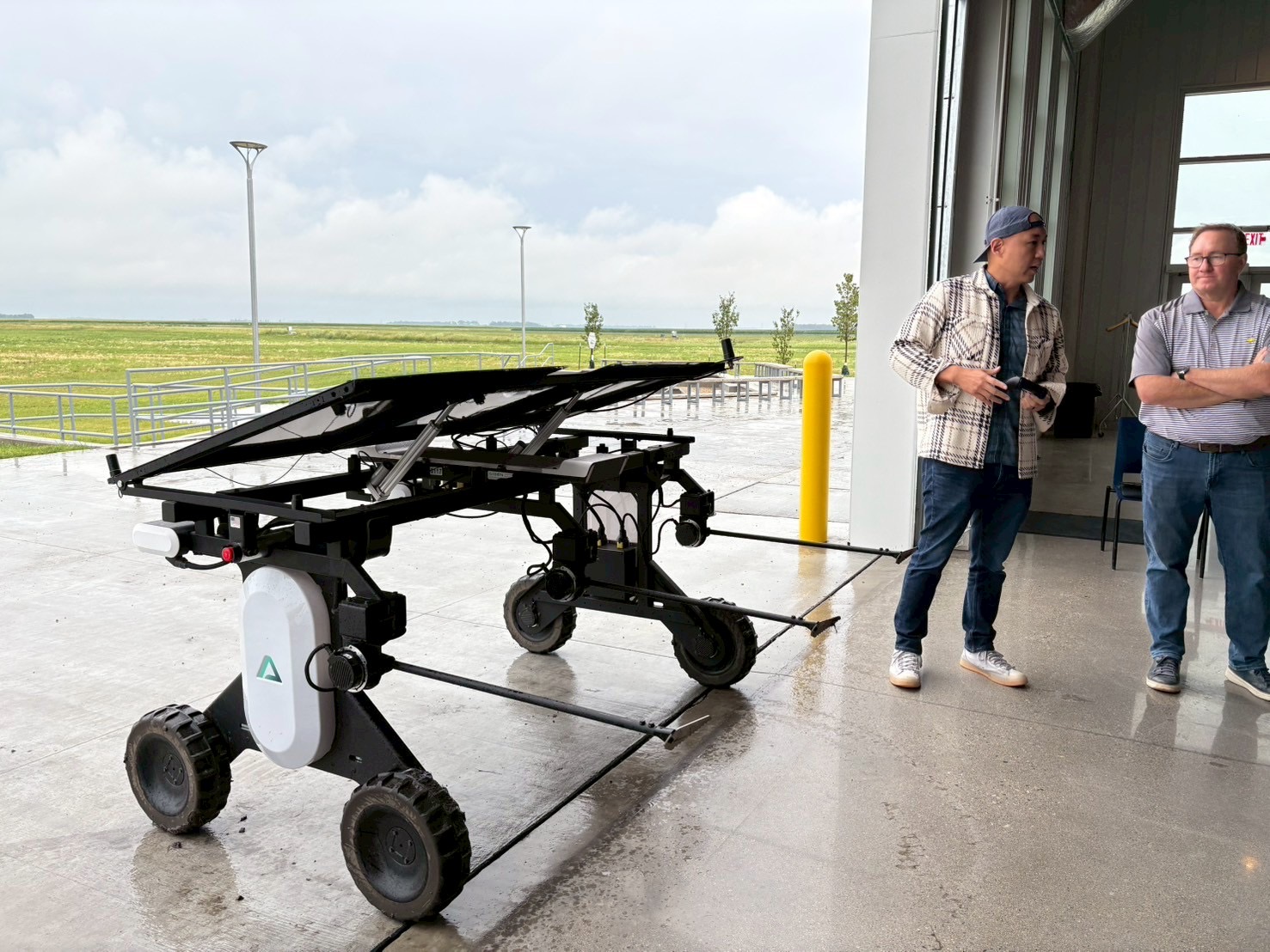 農地・農場・農家に関する最新技術の実証・市場への導入、スタートアップ支援を目的として設立。会社の周りには実証実験ができる畑が300ヘクタールあり、ジョージア州にもテストの畑があり各地にあわせた重機を提供しています。訪問の際にはAIが搭載された、除草機の紹介をしていただきました。機械にはカメラが内蔵され、畑の規模や雑草などを学習させます。ソーラーパネルがついているため24時間除草することが可能です。。