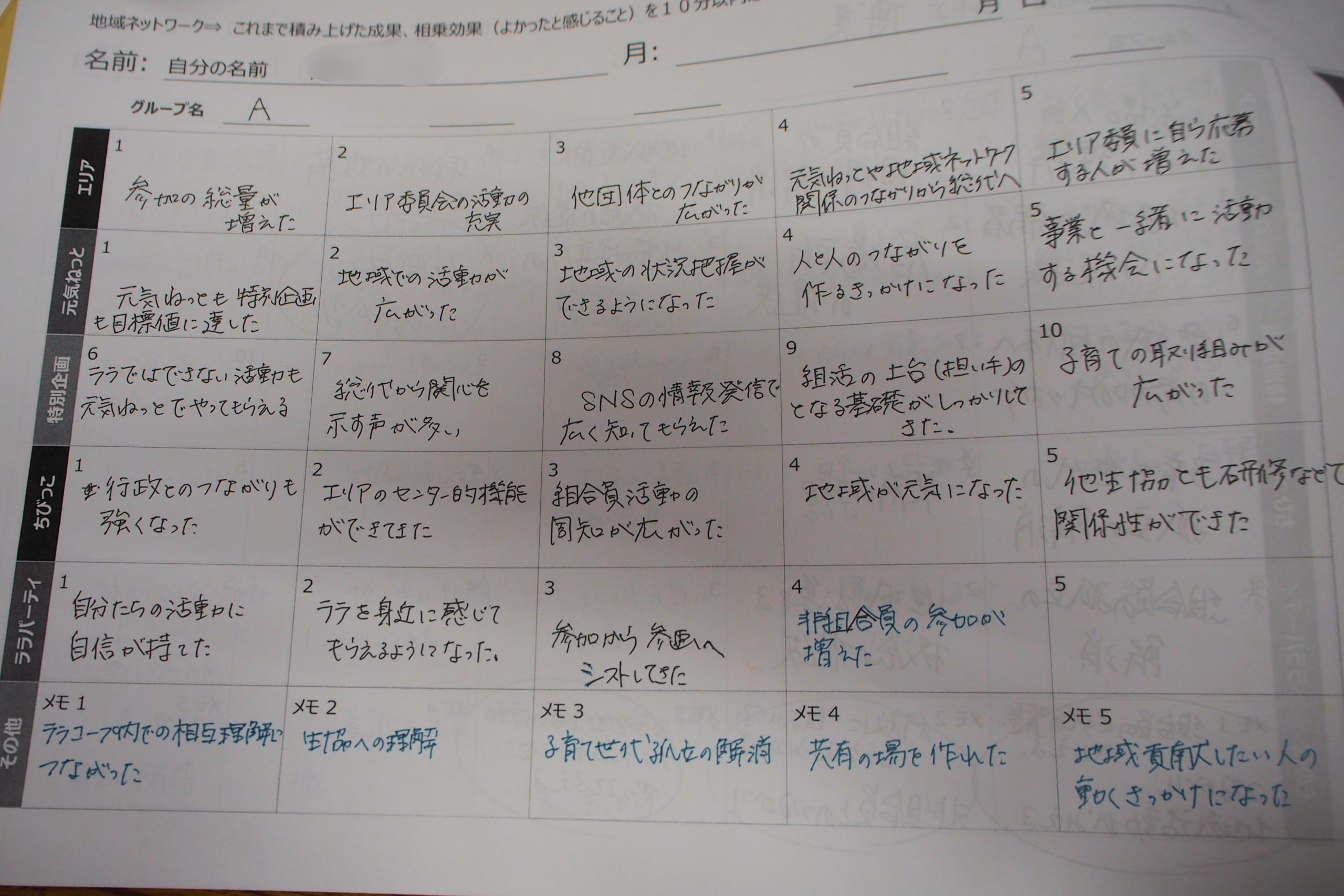 組合員理事、職員とも同じフォーマットで書き出し、論議の材料にします。これまで様々なテーマで論議は重ねられました。