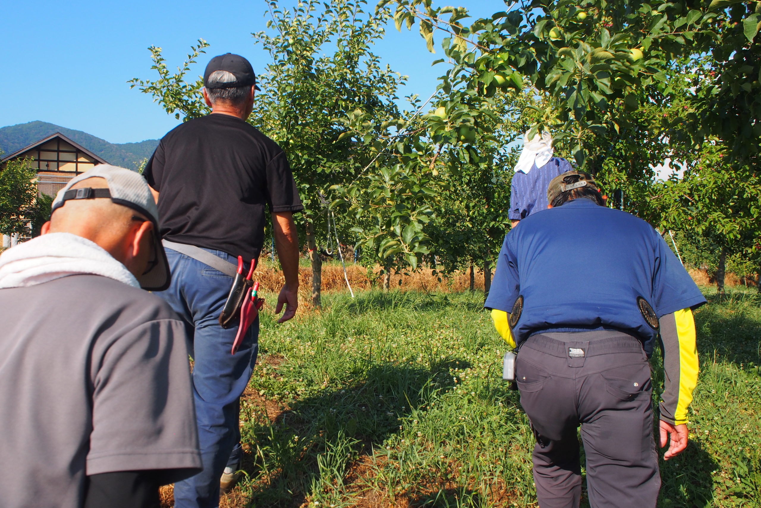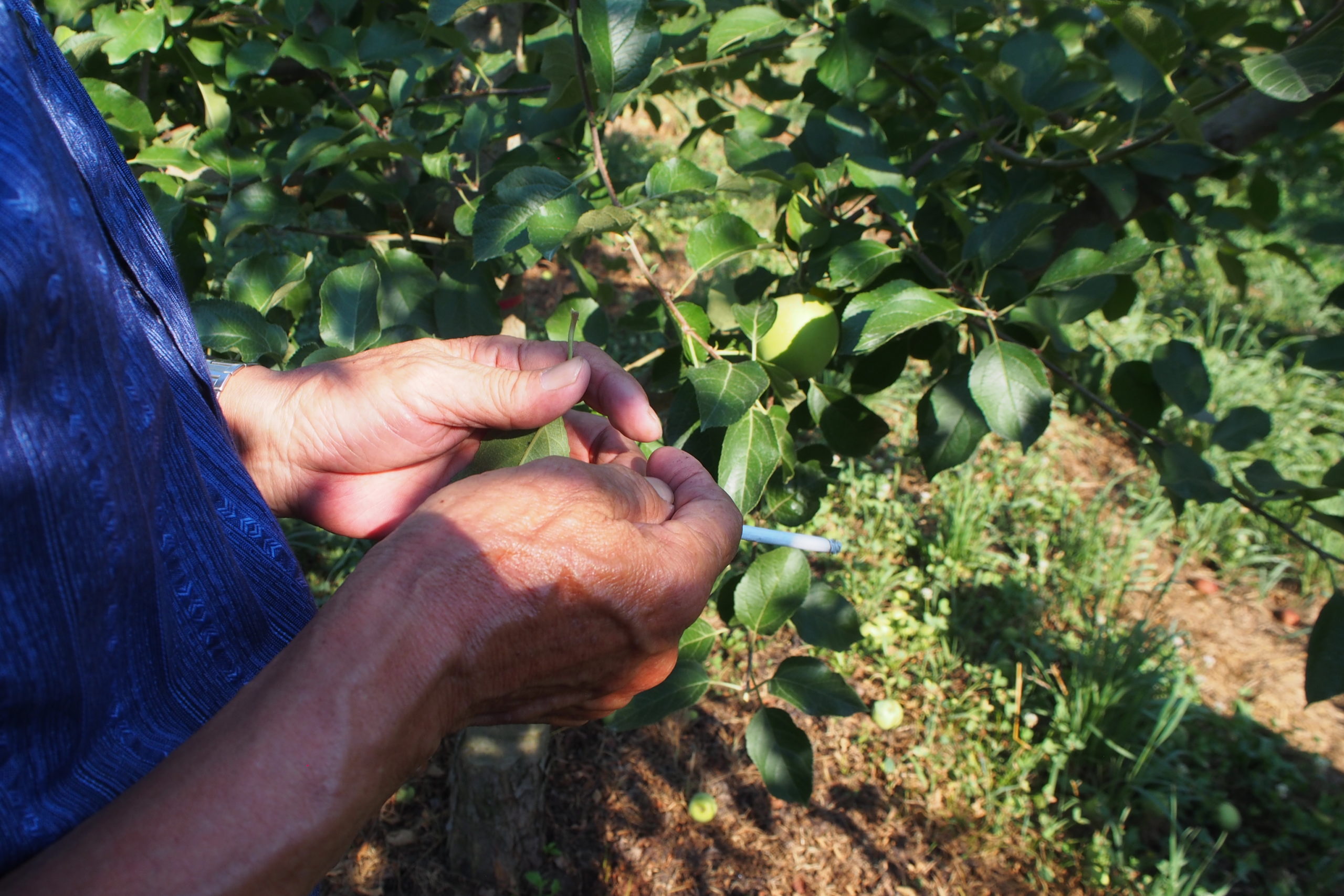 剪定の方法がりんごを育むうえでかなり大きなウエイトを占めるため、その仕立てに関する考え方は様々なようですが、互いに良いりんごを育てるために同じ環境で頑張る仲間なのだと感じました。
