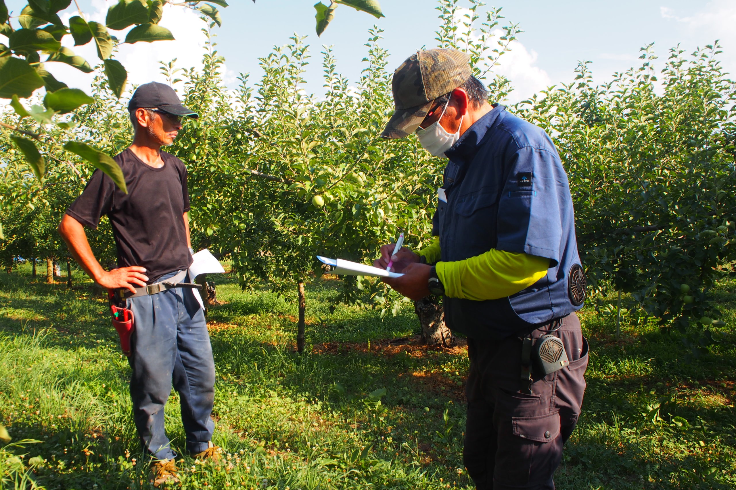 園地点検は、夏の時点での着果量や果実の品質を生産者同士がお互いに点検する場です。
