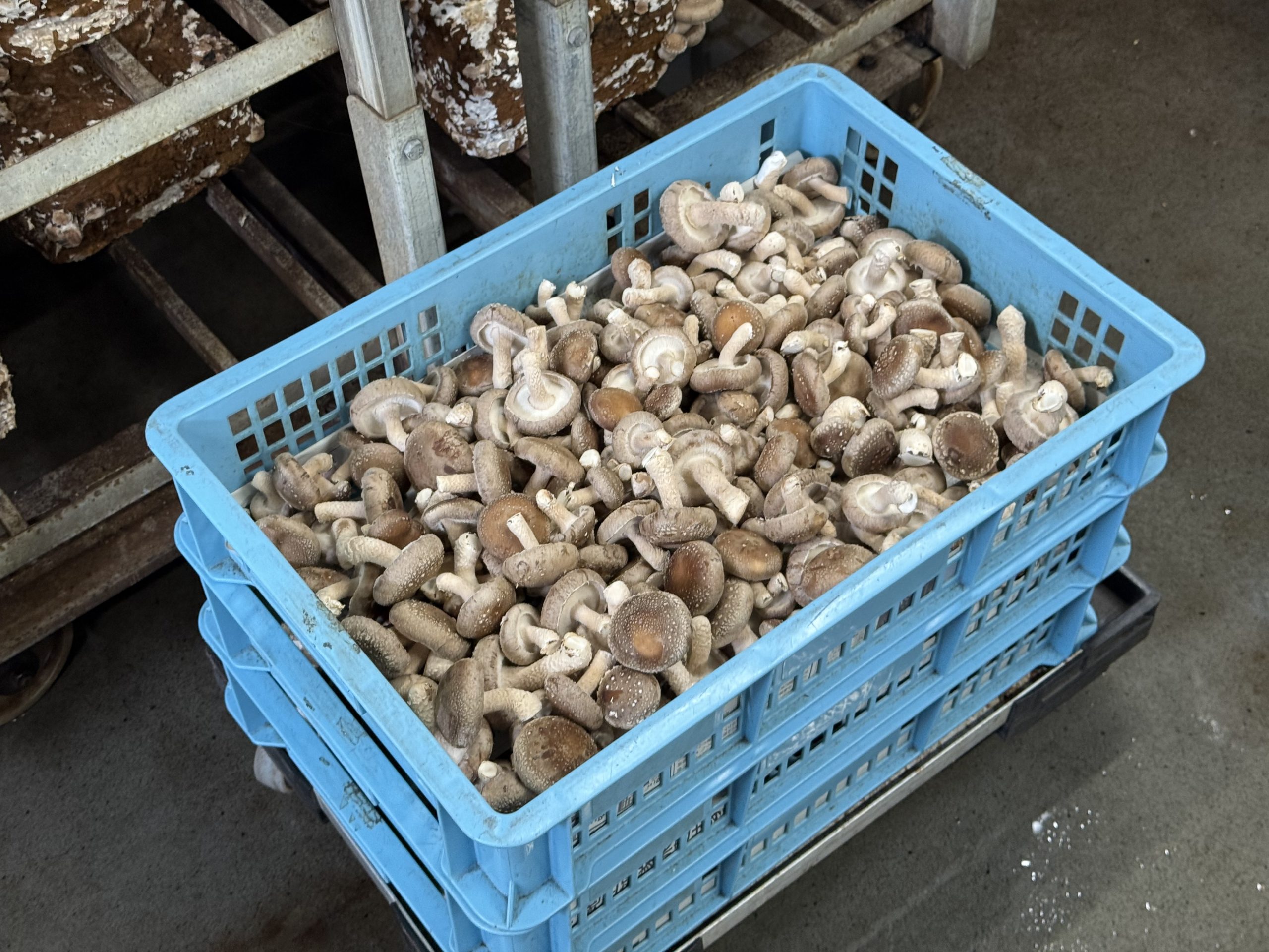 収穫されたこの日のしいたけの一部