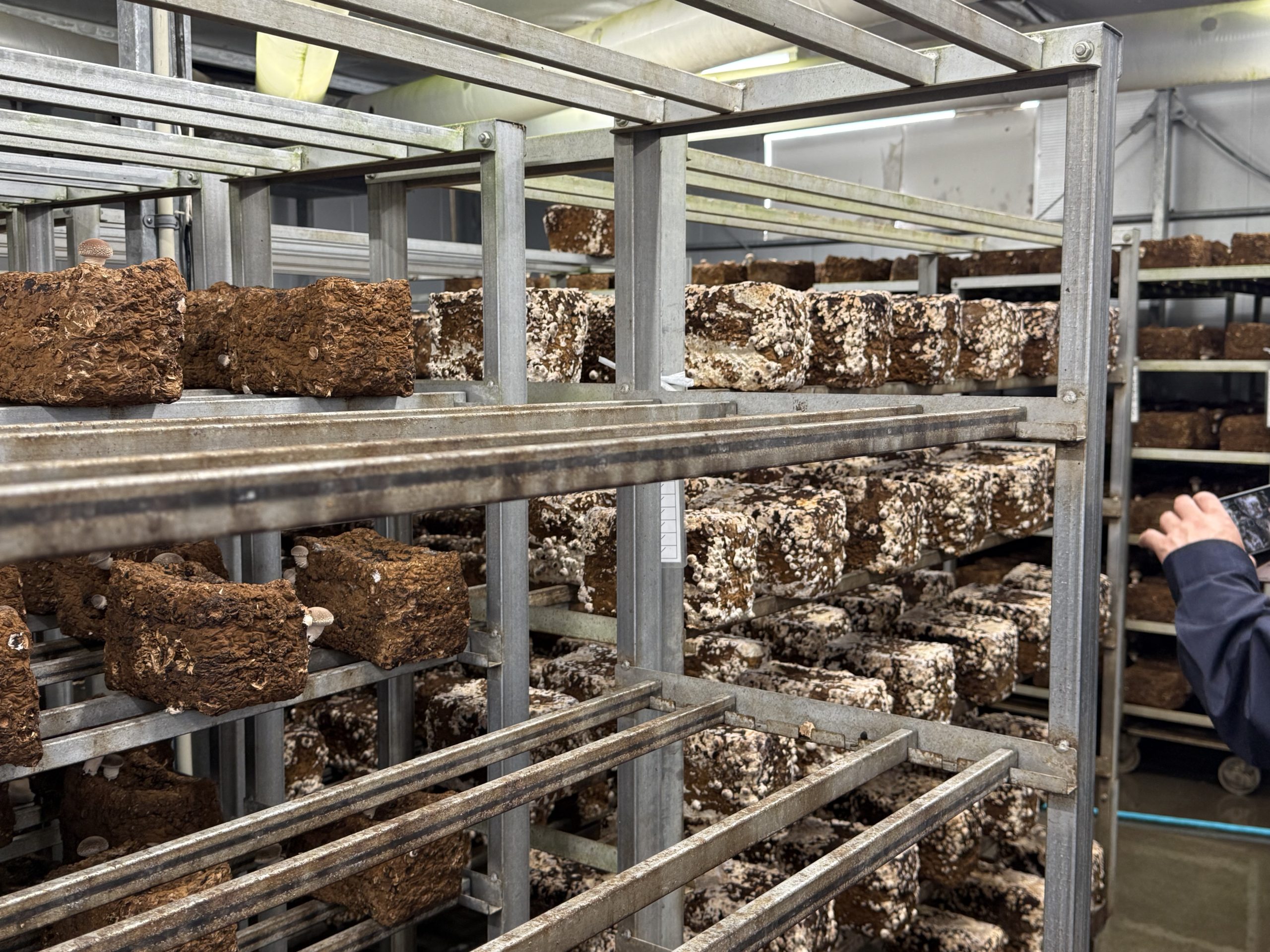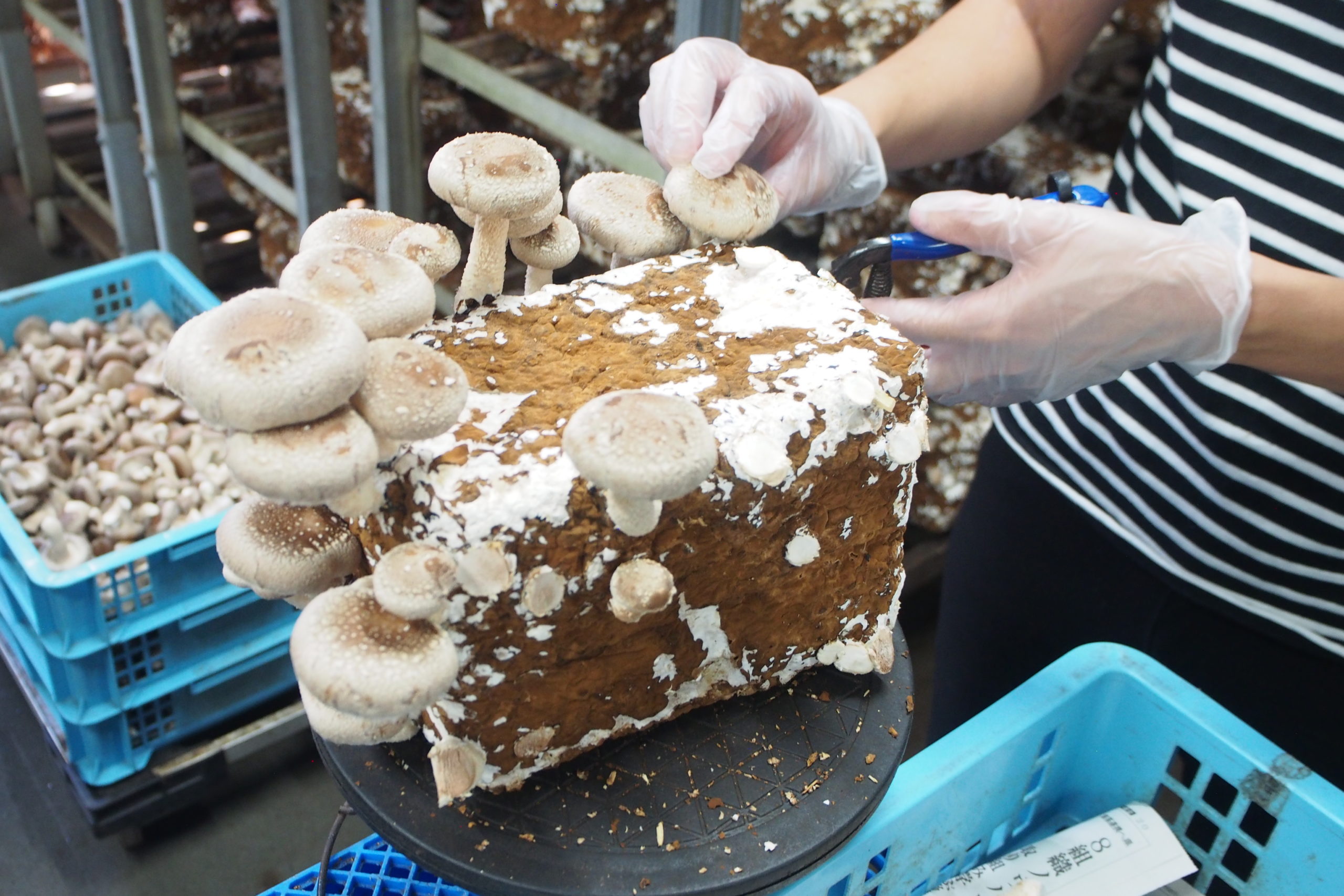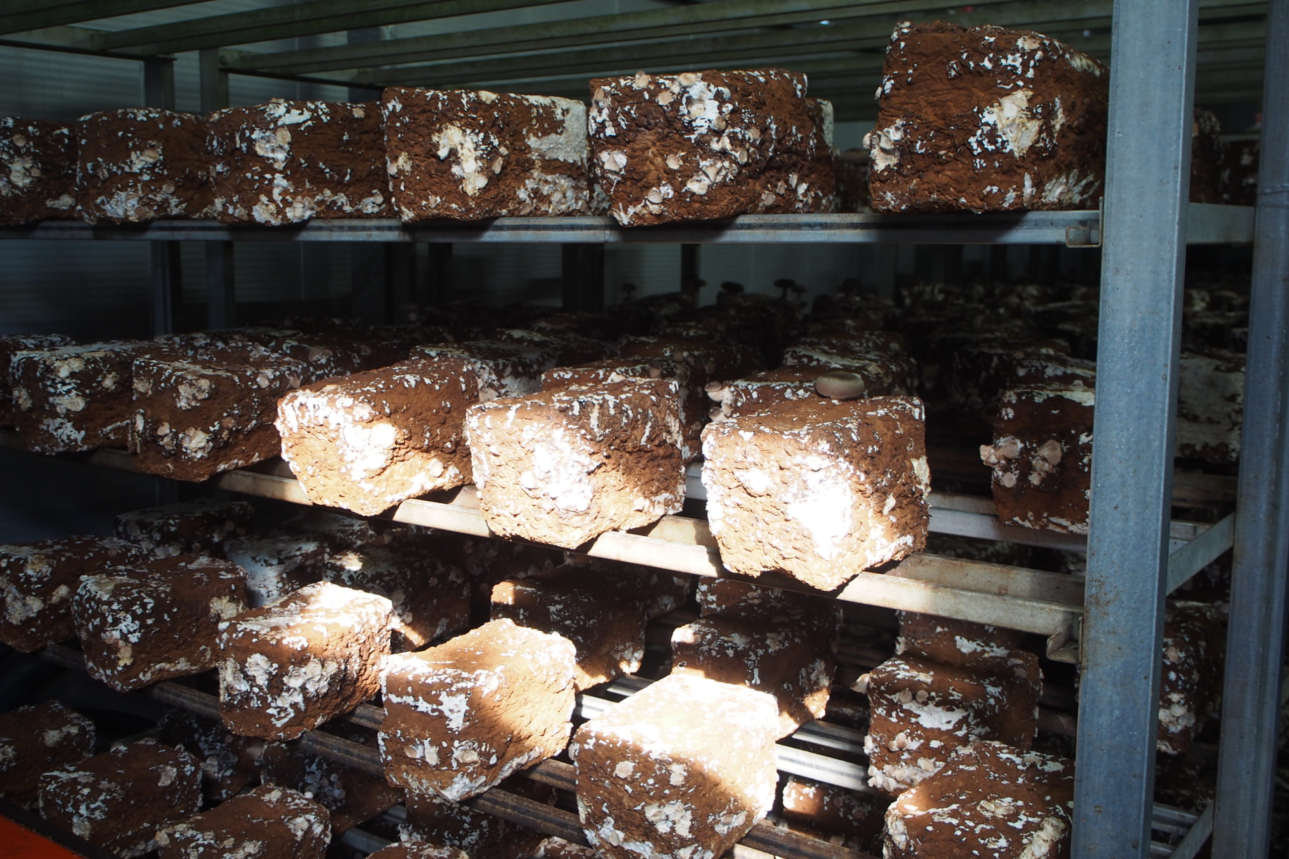 一度収穫が終了した菌床は、再び休ませ、再度発生してくるのを待ちます。現在3度繰り返し収穫を行っています。