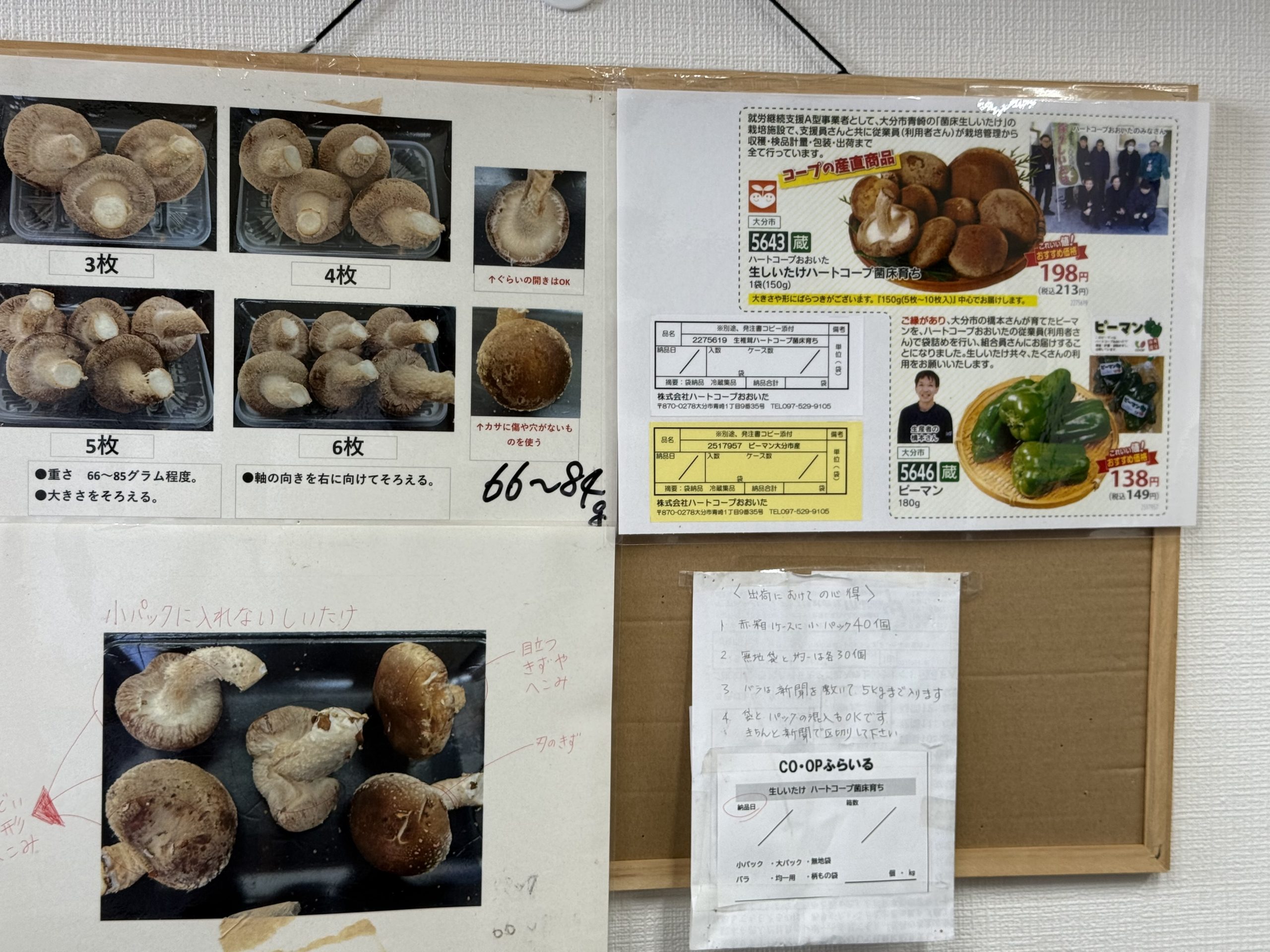 収穫されたしいたけは「ハートコープおおいた生しいたけハートコープ菌床育ち」という商品でカタログ企画や店舗で販売されています。ぜひご利用くださいっ!