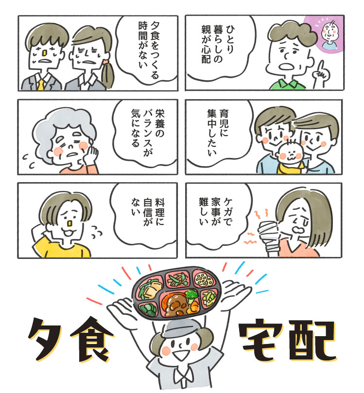 ほかにも料理メイン担当の家族がケガや入院をしてしまったとき、出張などでお家を不在にするときにも便利です。